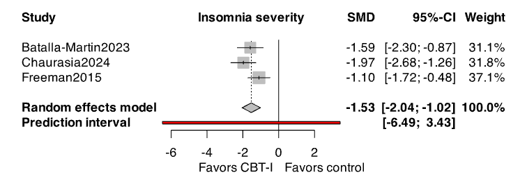 はじめに系統的レビューを行い、公表されている臨床試験に関する論文の中から、成人(18歳以上)の統合失調症合併不眠症に対する治療法としてCBT-Iと対照群とを比較したランダム化比較試験の論文を収集し、3つのランダム化比較試験(137人の参加者)を特定しました。